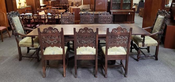 1920'S Jacobean Dining Room Set - Dining room set can be refinished and upholstered for your decor.